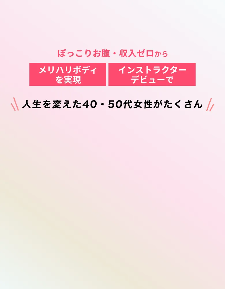 4大特典 こんなお悩みありませんか エンジェルボディメイクとは 選ばれる3つの理由 01 No筋トレ スマホ1台で完結 一人じゃない キレイが収入に 40・50代こそ輝ける仕事 人生を変える3ステップ お客様の声 講師紹介 特典プレゼント